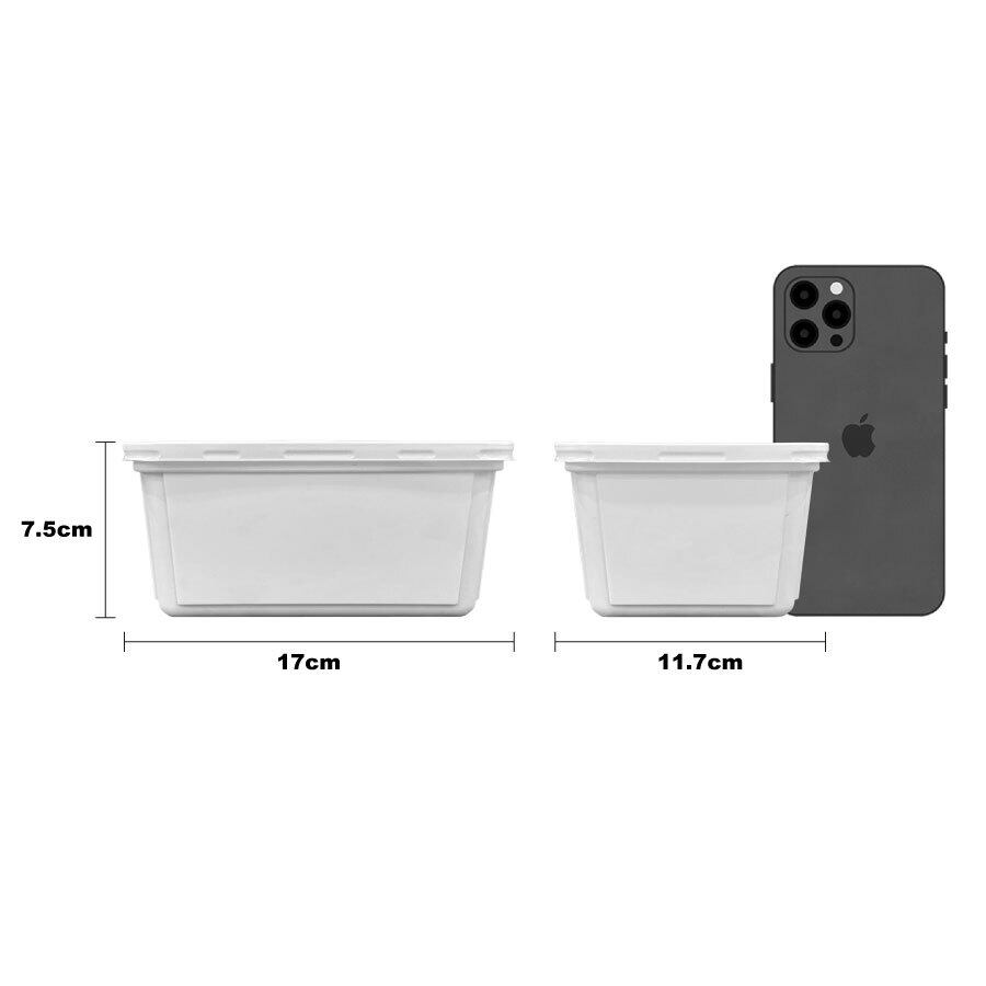 一般的なカップアイス(110ml)の約9個分にあたる1リットルのバット(H 7.5cm × W 17cm × D 11.7cm)でお届けします。