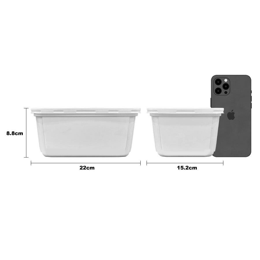 一般的なカップアイス(110ml)の約18個分にあたる2リットルのバット(H 8.8cm × W 22cm × D 15.2cm)でお届けします。